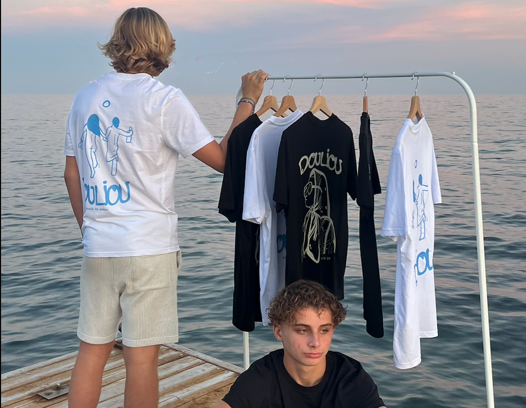 Douliou Club, ce sont de simples cartons, quelques traits de crayon et des éclats d’idée transformés en vêtements faisant écho à l'été méditérannéen, la douceur de la Provence et la lumière de la Côte d'Azur.